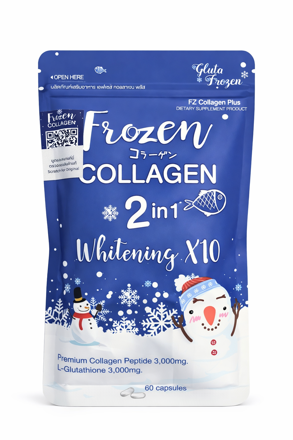 كولاجين 2 في 1 من جلوتا فروزن كولاجين - تفتيح البشرة 10 اضعاف بشكل طبيعي ( الأصلي ) 60 كبسولة