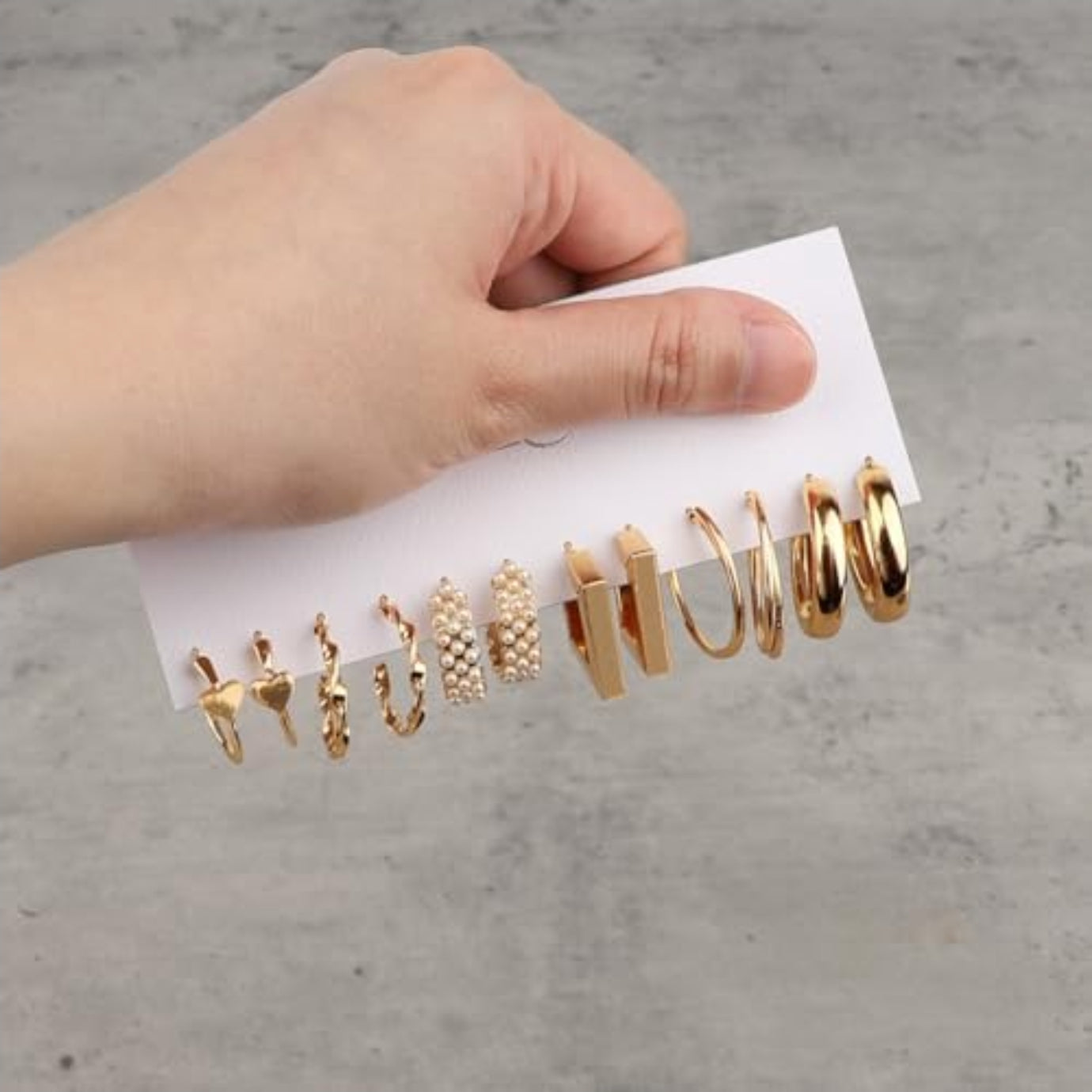 زوج من الأقراط الحلقية الذهبية لؤلؤ كبير حديث وأقراط ملتوية مزينة بشكل جميل لحفلات أعياد الميلاد للنساء، 6 و 24 قطعة